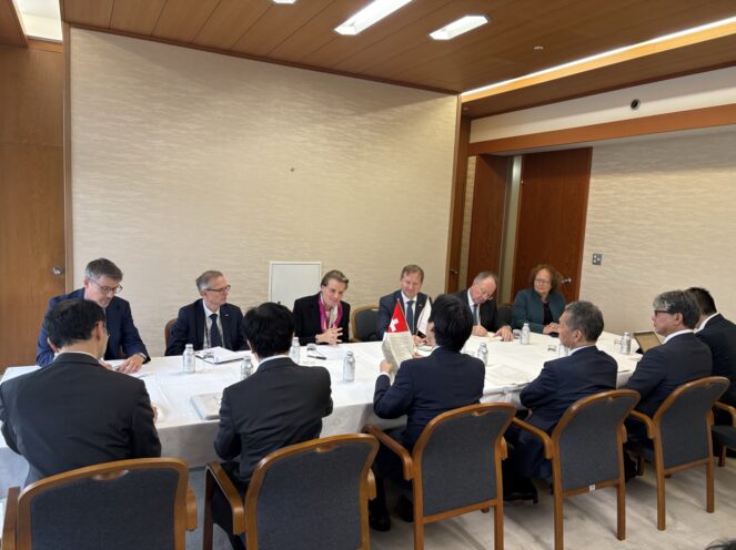 The signing was followed by an exchange where State Secretary Dr. Martina Hirayama and Minister Minoru Kiuchi discussed the importance of international collaboration and the benefits of joining forces to complement each other’s strengths and advance joint research and development initiatives. She outlined Switzerland’s strategic priorities in quantum science and technology, emphasizing the importance of international collaboration also in space innovation. Delegation members Dr. Alexandre Pauchard, CEO of the Swiss Center for Electronics and Microtechnology (CSEM), and Prof. Dr. Günther Dissertori, Rector of ETH Zurich, further developed these points by presenting their respective organizations and highlighting Switzerland’s vibrant research ecosystem. They referred to initiatives such as the Swiss Quantum Initiative (SQI), the Geneva Science and Diplomacy Anticipator (GESDA), and the ETH Space Center, as well as to Switzerland’s network of world-renowned universities and federal institutes that attract global technology leaders including IBM, Google, Disney, and Sony. Altogether, the inputs highlighted Switzerland’s interdisciplinary approach to innovation and the strong potential to deepen future Swiss-Japanese collaboration in quantum science.