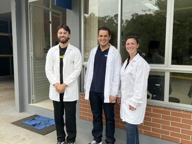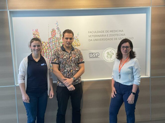 A equipe também teve o privilégio de apresentar sua solução a empresas farmacêuticas durante a visita para entender as necessidades do mercado e validar o interesse na vacina inovadora da Santella. Para navegar pelo cenário regulatório das vacinas veterinárias no Brasil, a Santella se envolveu com especialistas locais, como a Professora Terezinha Knobl, da Faculdade de Medicina Veterinária e Zootecnia da USP de São Paulo.