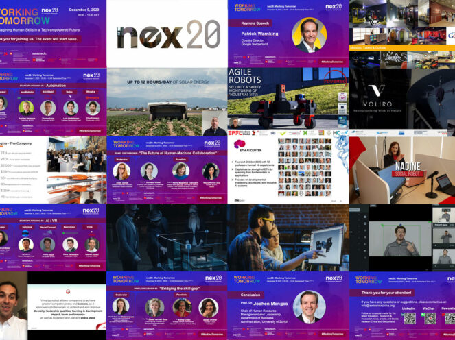 On December 9, the nex20: Working Tomorrow event will convene top representatives of the Swiss academic and business landscape, top level panelists from China, India, Singapore, South Africa, and Switzerland, as well as top entrepreneurs from Swiss Deeptech startups who will be pitching their innovative solutions to enable the future of work.