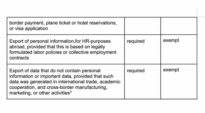 The Draft Provisions suggested welcome exemptions from the above-mentioned CBDT mechanisms, as well as some certainty with respect to what may be considered as important data. On the other hand, all other statutory obligations under the PIPL would continue to apply (e.g., securing consent from the data subject upfront, and preparing a transfer impact assessment report). Given the draft status of the Draft Provisions, however, these changes are not yet applicable. When the Draft Provisions will be finalized and whether the final version will contain the same changes as the Draft Provisions from the end of September are not yet clear.