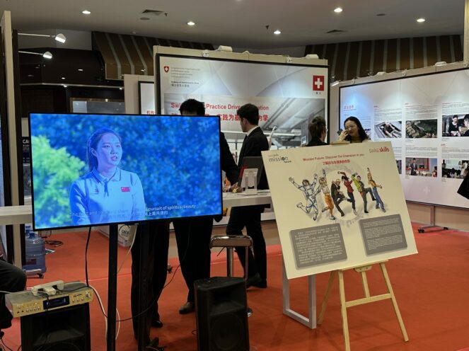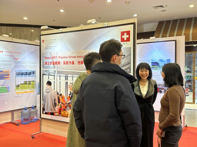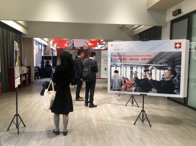 Highlighting the four key features of the Swiss VPET – market correlation, prestige, permeability, cost efficiency – the new exhibition also showcases the various VPET-related public-private partnerships as well as institutional collaborations. The exhibition, which has already been presented at three major events in Shanghai and Beijing, has sparked discussions and enabled new contacts between Chinese and Swiss educational, governmental and corporate stakeholders.