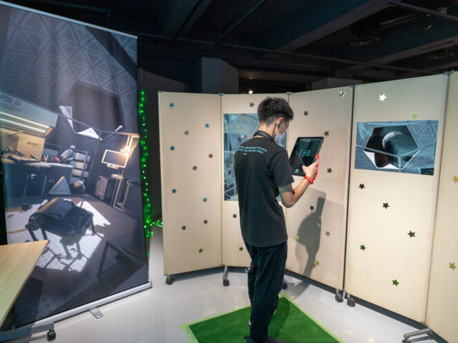 A thrilling co-op augmented reality escape game taking place in a lunar base and its mission control center on Earth where cooperation, action and time will be key to saving the mission!