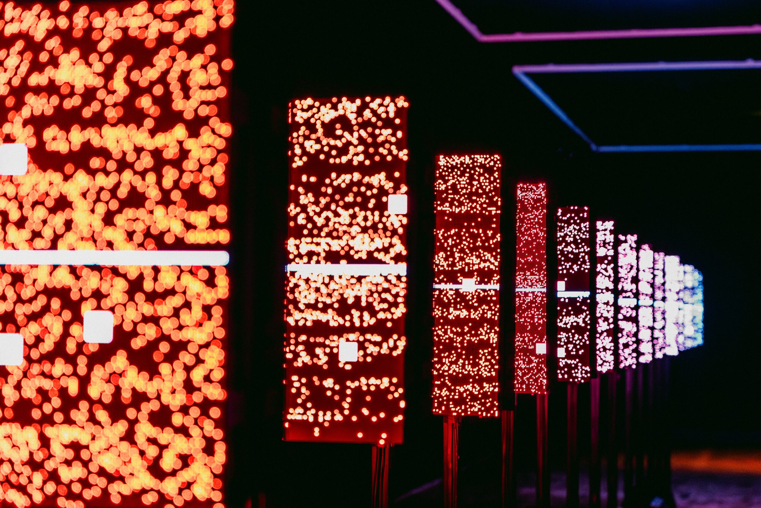 Key works include Orquestra Vermelha (2013–, album 2019), an expanded band where he performs alongside life-size projections of absent musicians to question what counts as “live”; Moiré (2019), for two computer-played acoustic pianos, modular synthesis, and programmed light; and Céu Zero (2024–25), a light-and-sound installation that reframes horizon and depth as temporal sculpture. His generative series, Pedra Pássaro and 256×256×256×256, translate algorithmic constraints into organic visual motion. Beyond the art field, Leston builds responsive environments for brands and architecture, including interactive visuals for Hermès, a generative identity for Galeria Melissa – 20 years, pop-up activations for Mizuno, and runway/immersive collaborations (e.g., BRIFW/Renner). He has composed for film and TV (notably Contos do Edgar) and performed with Patife Band.