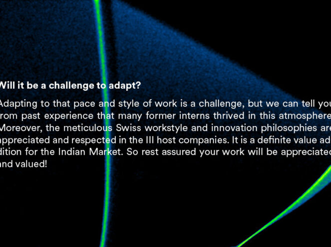 The India Industry Internship (III) offers Swiss university students a unique immersive experience that encourages them to combine the meticulous and methodical Swiss processes with the unusual Indian innovation mindset.
