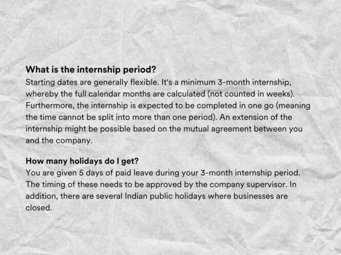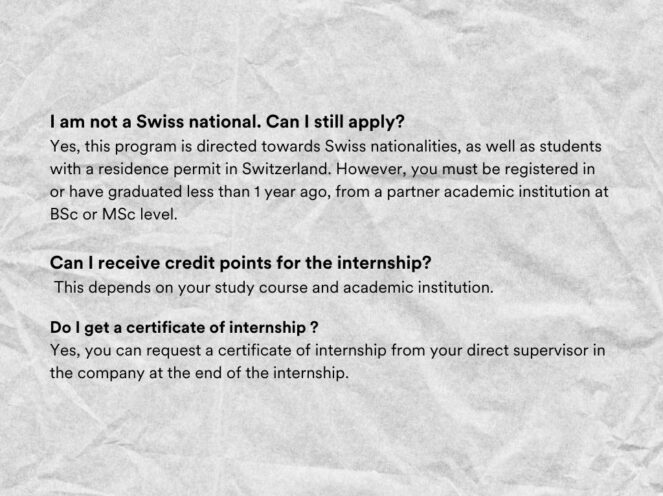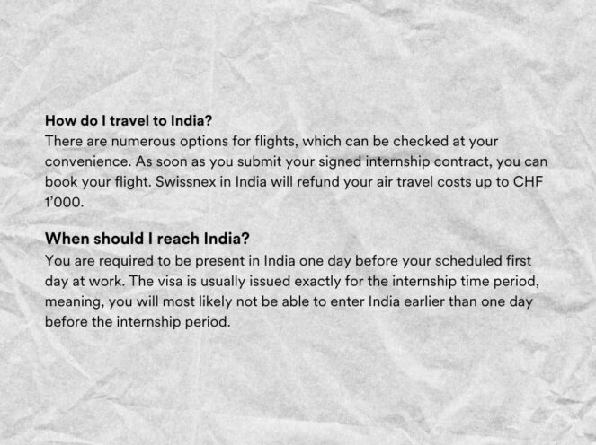 Take a quick look at what the internship program entails. Ensure that you read through the eligibility criteria before applying. If you are approved for a iii internship, please check with Swissnex in India for visa, housing and other related info.
