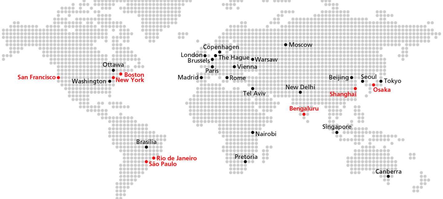 Swissnex is a global network consisting of six locations and outposts established in the world’s most innovative hubs. Together with around twenty Science and Technology Offices (STO) and Counselors (STC) based in Swiss Embassies, we contribute to strengthening Switzerland’s profile as a world-leading innovation hotspot. Our six locations and outposts established in the world's most innovative hubs support the outreach and active engagement of our partners in the international exchange of knowledge, ideas and talent.