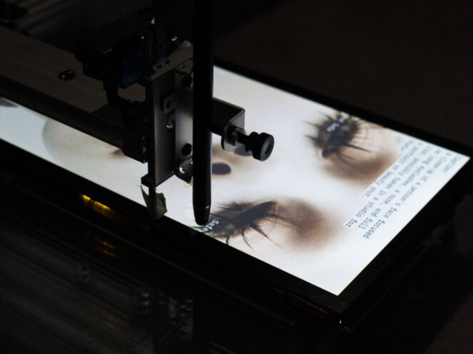 The exhibition demonstrates the encounter between design, creative technology, artificial intelligence and robotics through three interactive projects: