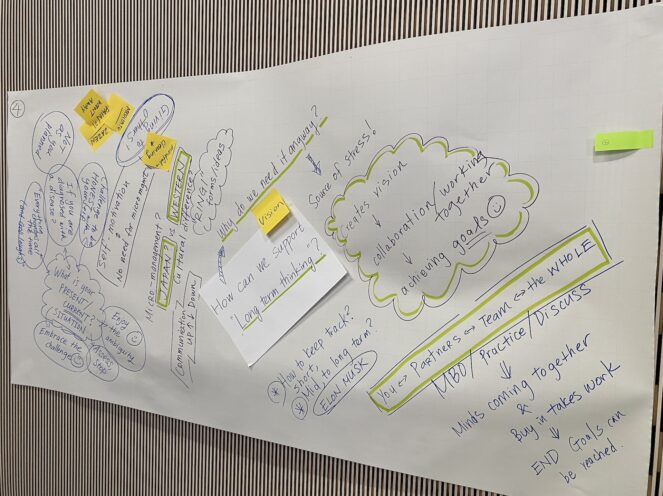 We delved deep into the intersection of mindfulness and leadership in today’s dynamic world. From the enriching insights of Stefanie Neumann and Christoph Hoffmann from ZHAW, to the profound overview of Japanese Zen culture by Zenryu Kawakami, and the thought-provoking talk on long-term thinking by Shoukei Matsumoto, every moment was filled with inspiration and wisdom. The interactive workshop provided a platform for fruitful discussions on leadership, fostering connections between diverse perspectives in both English and Japanese. We discussed the following 3 questions, and we received colourful results after this!