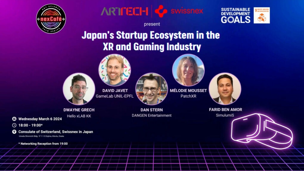 Swiss Consul & CEO, Dr. Felix Moesner, and Head of Art-Science, Fiammetta Pennisi, were delighted to host the 7th nexCafé event, “Japan’s Startup Ecosystem in the XR and Gaming Industry,” alongside our esteemed partner, Nathalie Pichard from ArtTech Foundation.