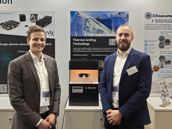 Find moreRepresented by Dr. Iwan Hächler, Solabs delivers the first completely durable solution against fog. Unlike short-lived sprays and coatings, its ultra-thin nanocoating fights fog through passive heat transfer rather than wettability. Integrated beneath protective layers, it remains permanent, enables multifunctional surfaces such as anti-fingerprint, and reduces thermal stress on the pupil. Manufactured with standard PVD processes, it scales seamlessly across ophthalmic, automotive, and other industries.