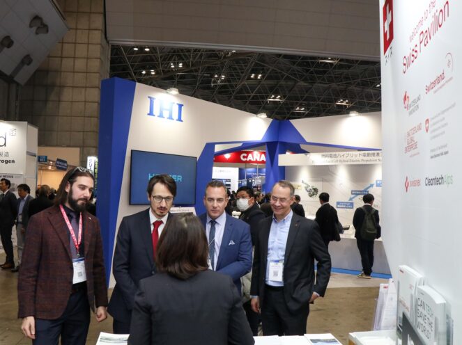 From February 19 to 21, the Swiss Pavilion at the H2 & Fuel Cell Expo 2025 showcased 18 pioneering Swiss companies, alongside CleantechAlps and Switzerland Innovation. Their cutting-edge solutions in hydrogen production, storage, and utilization attracted global industry leaders. On February 20, David Braun (Deputy Head of Mission), Fabian Stiefvater (Head of Swiss Business Hub Japan), and Dr. Felix Moesner (Swiss Consul & CEO of Swissnex in Japan) visited the Pavilion, engaging with exhibitors and reinforcing Swiss-Japanese collaboration in hydrogen innovation.