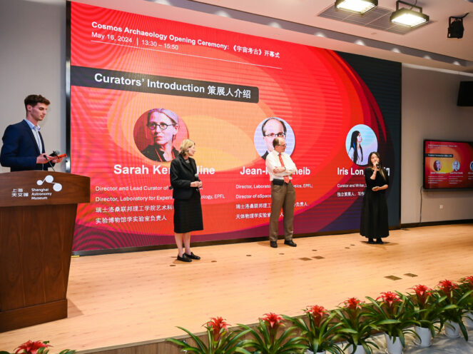 The artworks featured in “Cosmos Archaeology” primarily result from the close collaboration between the humanities and astronomy. This key exhibits from EPFL is co-created by the EPFL’s Laboratory for Experimental Museology (eM+) and Laboratory of Astrophysics (LASTRO). Additionally, the exhibition highlights collaborations between artists and prominent astronomical projects, including the MUST Telescope from Tsinghua University and the Chinese SKA Science Projects led by the Shanghai Astronomical Observatory.