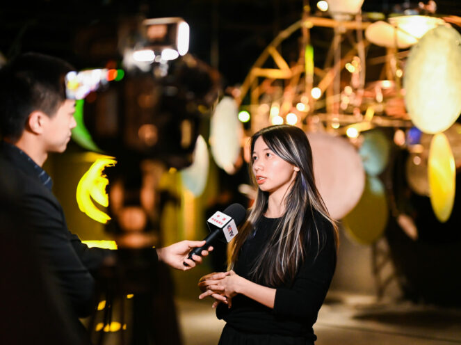 The Opening Ceremony of the exhibition at the Shanghai Astronomy Museum was a formal celebration of creativity and collaboration, featuring speeches from curators, artists, and academic partners. The curators offered a guided tour of the exhibition, followed by a film screening in the museum’s dome. This event highlighted the exhibition’s mission to foster international dialogues on astrophysics, artistic expression, and space sustainability.