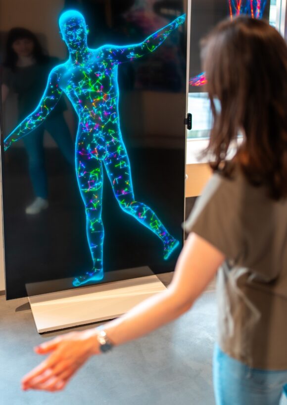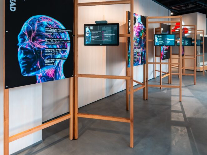 From June 6 to 30, visitors to Swissnex in Japan’s public window space experienced an interactive exhibition featuring 16 pioneering research projects from EPFL (École polytechnique fédérale de Lausanne). Designed to provoke reflection and connection, the Connected Human exhibition explored how technologies such as exoskeletons, AI-powered diagnostic tools, and bioelectronic implants are not only augmenting human capabilities but also enabling repair and reconnection in radically new ways.