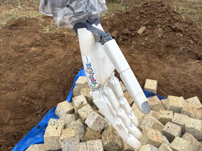 During the demonstration, the GigaHand performed a series of grasping tasks, from lifting sandbags to manipulating more complex and fragile items, such as a bucket or a hose, all controlled via a glove-based teleoperation system. The hand’s musculoskeletal design, inspired by biological tendons and joints, allowed for precise and fluid movements and remarkable strength.