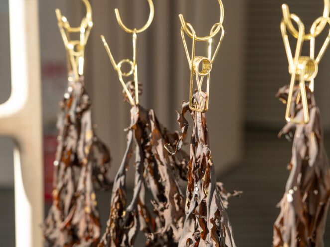 At the heart of the exhibition was an evocative mixed-media installation inviting visitors to imagine a speculative future where humanity coexists and co-evolves with microorganisms from the protista kingdom. The piece posed a thought-provoking question: could humans become fully autotrophic, living as “Homo Photosyntheticus”? Through design, performance, biohacking, and culinary experimentation, the exhibition challenged visitors to envision sustainable futures.
