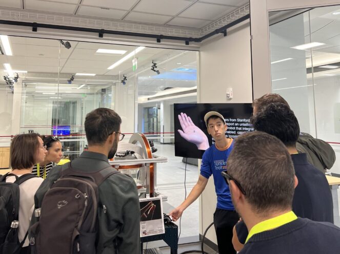 At Stanford University’s Robotics Center and Movement Lab, the group saw how robotics research is increasingly grounded in human motion, perception, and embodied interaction, with projects such as “Beyond Mimic,” a Real-world humanoid control via motion tracking and guided diffusion learning from human motions, or “TWIST,” a Teleoperated Whole-Body Imitation System.