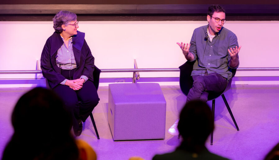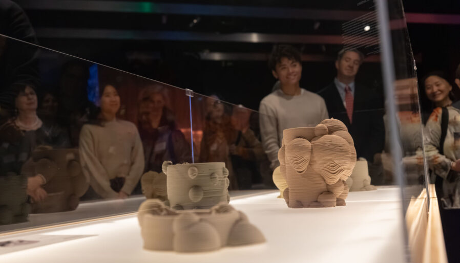 Following the symposium, the conversation continued at the Swissnex office, where Andersen joined in a public conversation with Geneva-based artist Alan Bogana, her long-time collaborator at EPFL, whose work is also featured in the exhibition. The two explored how they use light to shape both matter and meaning, Bogana through “solidifications of light”—sculptures made by propagating light through photosensitive resin—and Andersen through her work in daylighting, an architectural approach that optimizes for natural light. Sharing visual excerpts, stories from the laboratory, and insights from the development of the Lighten Up!, the two traced the porous boundary between scientific inquiry and artistic practice.