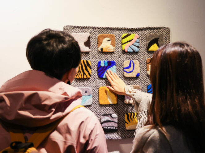 Given that this exhibition has already taken various forms in other countries and considering the specific spatial constraints of the Chinese exhibition, I proposed a renaming and a completely different approach. Katharina immediately supported this proposal, and I drew inspiration from Zhuangzi to localize the exhibition and offer a fresh cultural perspective on technology and the universe. To bring this vision to life, I invited artist and designer ZHU Yunyan to collaborate with me. Yunyan redesigned the exhibition space and created felt artworks that responded to the digital reality. Additionally, Katharina invited a Swiss artist to reflect on extinct wildlife, once integral to our planet, through a warm and feminine lens.