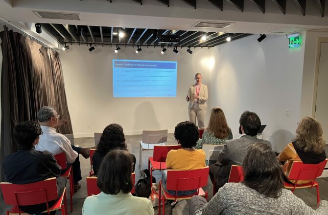 Anna Wiedemann focuses her research on Information Systems Development and Operations (DevOps). Upon arriving in Brazil in August 2023, Anna was welcomed by the Swissnex team, who organized two events to connect her with the Brazilian ecosystem. These were perfect opportunities to make her first contacts with professionals in the Brazilian market interested in applying the professor’s knowledge with companies that welcomed her for meetings throughout her time in Brazil.