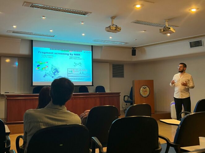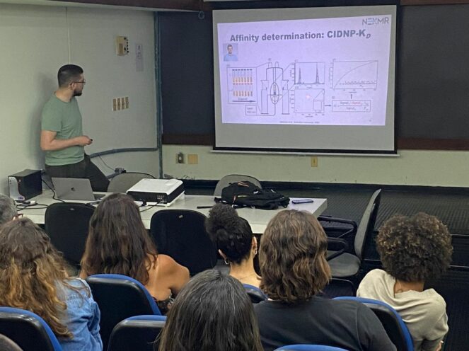Transitioning to Ribeirão Preto, Félix contributed his expertise at a seminar on Fragment Screening at the Faculty of Pharmaceutical Sciences of Ribeirão Preto – USP, discussing the innovative application of photo-induced hyperpolarization for ultrafast NMR fragment screening.