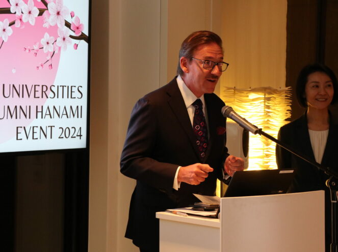 Ambassador Baum opened the festivities with a welcome remark that emphasized Japan and Switzerland’s shared values in upholding strong relationships in the fields of science, technology, and innovation, namely through the Momerandum of Cooperation signed last October in Kyoto by Minister Masahito Moriyama and State Secretary Martina Hirayama, the Swiss State Secretary for Education, Research and Innovation. The high value of inter-university and international student exchanges were also highlighted as key tools for fruitful international relations and collaborations.
