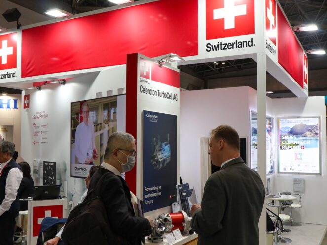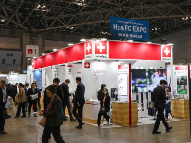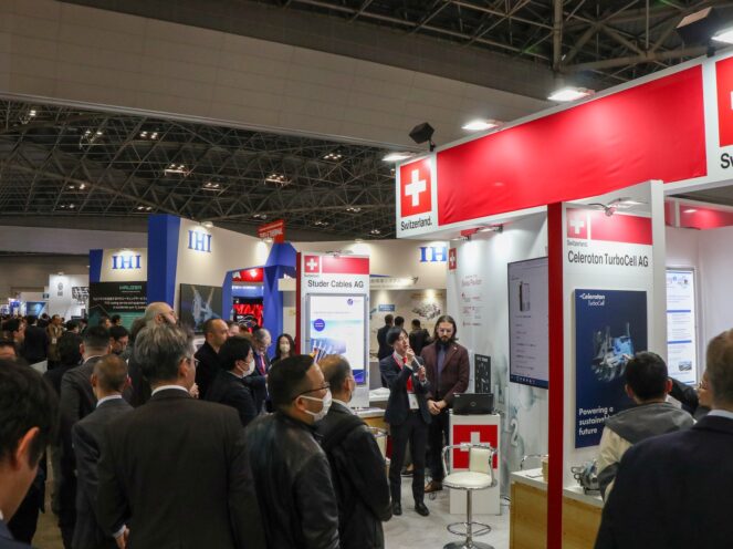 From February 19 to 21, the Swiss Pavilion at the H2 & Fuel Cell Expo 2025 showcased 18 pioneering Swiss companies, alongside CleantechAlps and Switzerland Innovation. Their cutting-edge solutions in hydrogen production, storage, and utilization attracted global industry leaders. On February 20, David Braun (Deputy Head of Mission), Fabian Stiefvater (Head of Swiss Business Hub Japan), and Dr. Felix Moesner (Swiss Consul & CEO of Swissnex in Japan) visited the Pavilion, engaging with exhibitors and reinforcing Swiss-Japanese collaboration in hydrogen innovation.