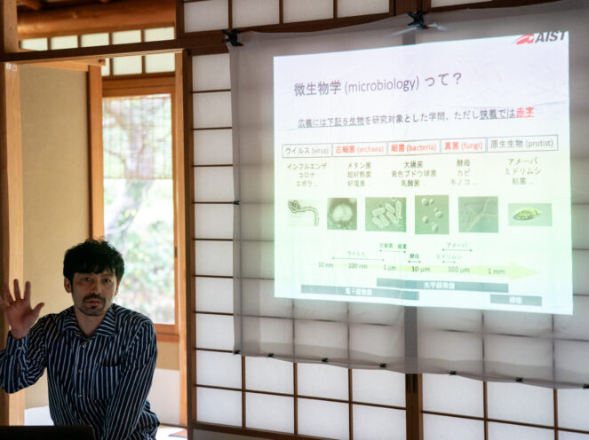 The program opened with Yoko Shimizu (MISAF Lab), who presented the project’s objectives and highlighted both the scientific and cultural significance of the project drawing parallels with other transformative citizen science initiatives worldwide. Adding an international perspective, Anne-Mai Do (Science & Technology Office Tokyo, Embassy of Switzerland in Japan) shared the backstory of this Swiss–Japanese collaboration, highlighting the shared commitment to advancing science through public participation. Attendees were also introduced to the key stakeholders driving the initiative (see “Partners” section at the end of the article). This was followed by an engaging talk from Dr. Ryo Miyazaki (AIST Microbial Systems Research Team), the lead researcher on the Japanese side, who offered a deep dive into the fascinating world of microorganisms. Participants explored microbial diversity, the challenges of studying life invisible to the human eye, and the cutting-edge techniques researchers use to overcome these hurdles.