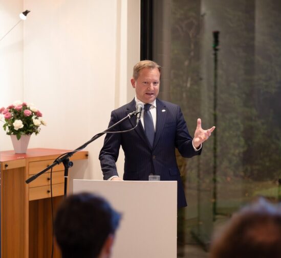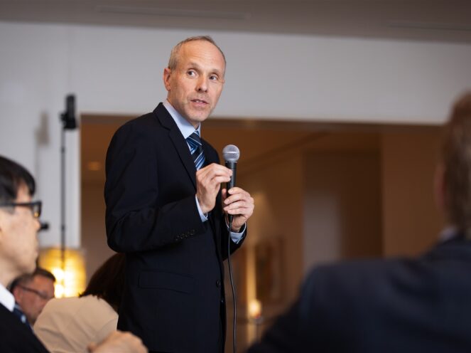 In his welcome address, Ambassador Roger Dubach hosting the event emphasized the importance of international collaboration in navigating the societal implications of AI. Drawing on his background in international law and digital governance, he highlighted Switzerland’s commitment to ethical frameworks and praised the shared values between Switzerland and Japan, particularly the integration of modern innovation with traditional principles.
